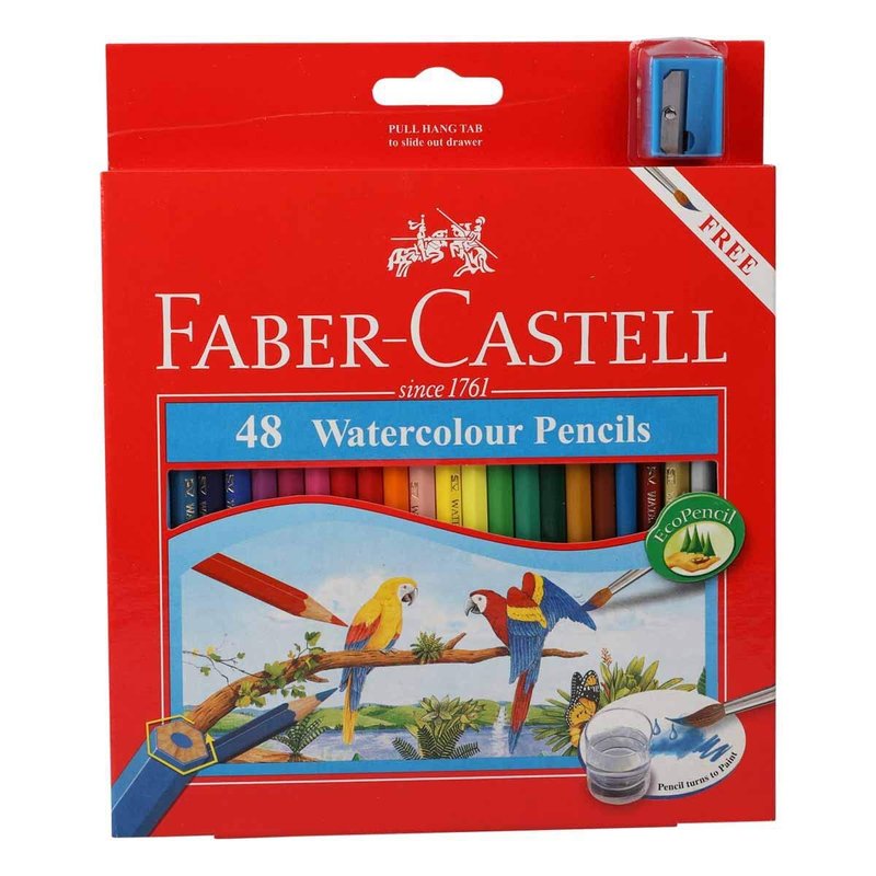 Faber Castell WaterColor Pencils with Sharpener and Brush, 48 WaterColored Pencils set