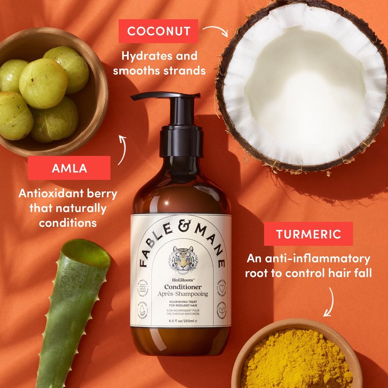 Fable and Mane Holiroots Hair Conditioner for Women, Moisturizing Conditioner for Damaged Hair, Hydrating Conditioner for Dry Hair with Turmeric - Genuine Fable and Mane Conditioner 8.5 FL oz
