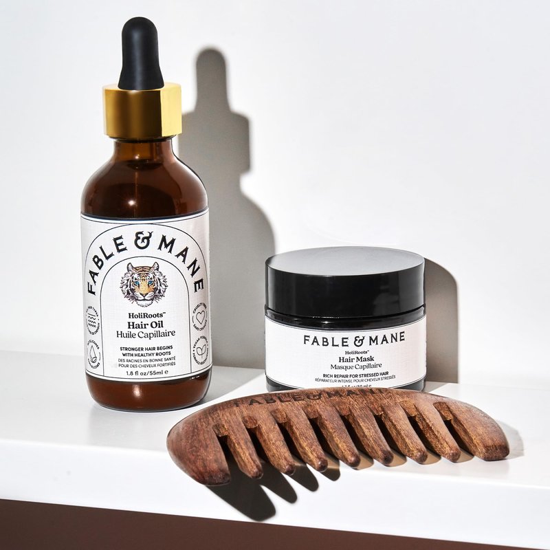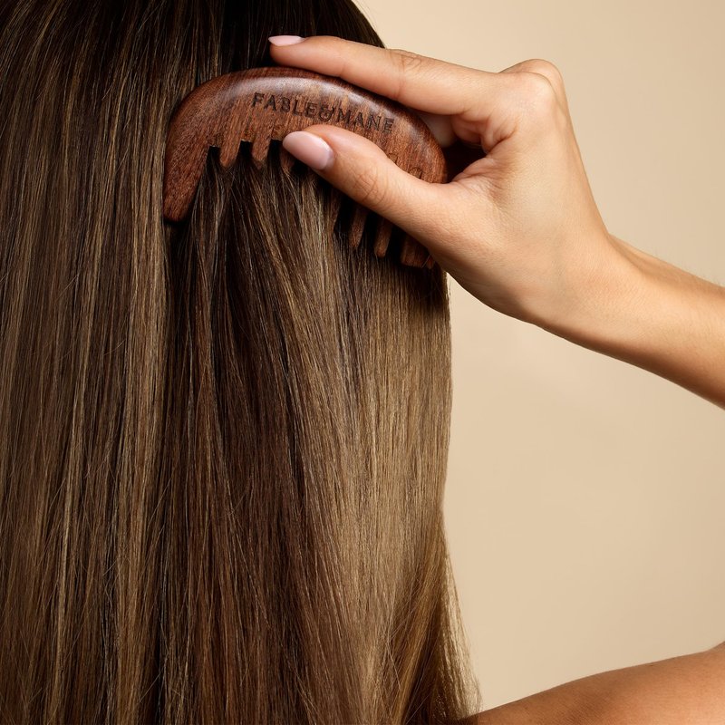 Fable & Mane Scalp Massager Comb - Detangles Strands and Gentle Massages the Scalp - Made from 100% Natural Ebony Wood