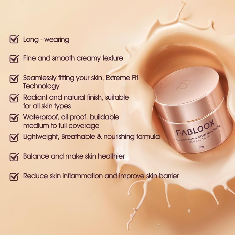 - FABLOOX FOUNDATION: Our cream foundation is an anti-aging foundation makeup that creates a "second skin" effect - breathable and smooth, with buildable medium-full coverage. The luxurious and nourishing formula presents an unparalleled spa-like experience.