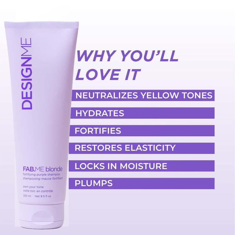 FAB.ME Blonde Fortifying Purple Shampoo by DESIGNME | Toning Purple Shampoo for Blonde Hair - Neutralizes Brass and Yellow Tones | Enriched with Hyaluronic Acid | Color Depositing Formula