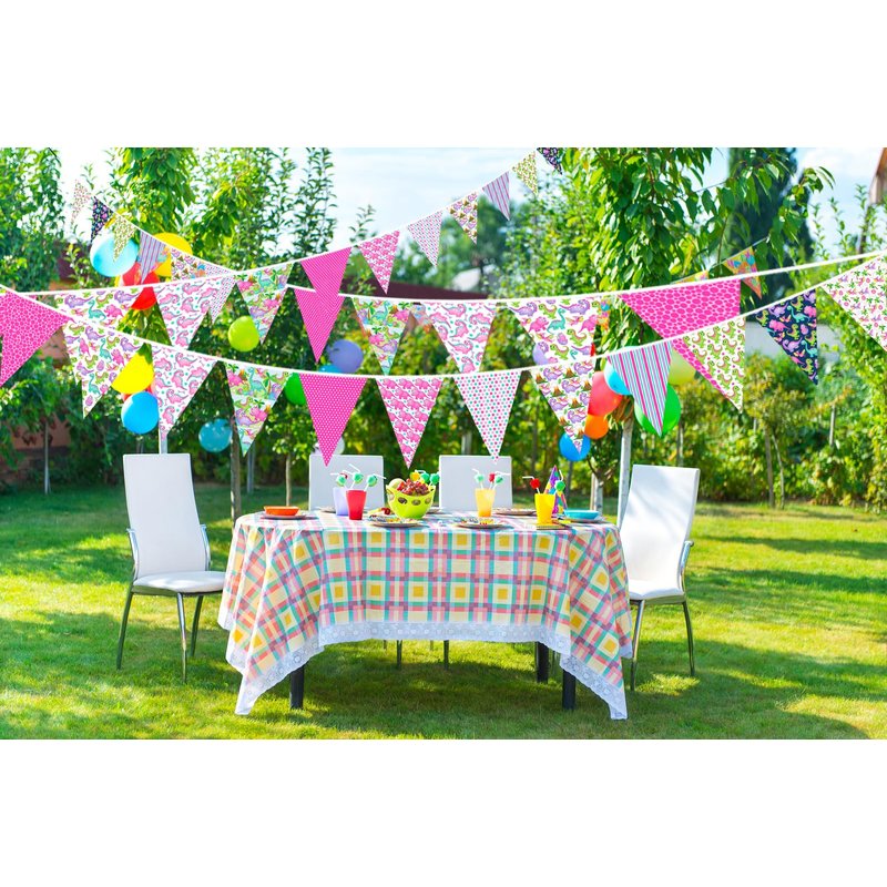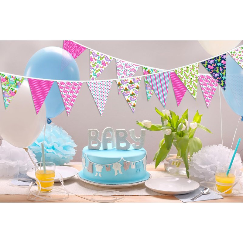 - Package Included: 1x hanging fabric bunting banner with 12 pcs colorful flags. Banner Length: Approx 3 Meters / 10 feet. Patterns are printed on each polyester flag( 7.9 inch x 10.5 inch/20cm x 26.7cm) , visible from both sides.