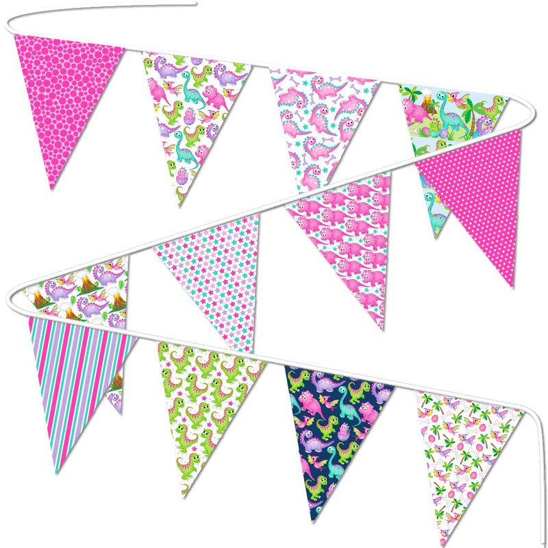 Fabric Pink Pennant Banner for Dinosaur Girls, Pink Dinosaur Birthday Banner for Girls, Pink Baby Dinosaur Birthday Party Supplies for Kids Teens, Dinosaur Birthday Party Indoor Outdoor Decorations