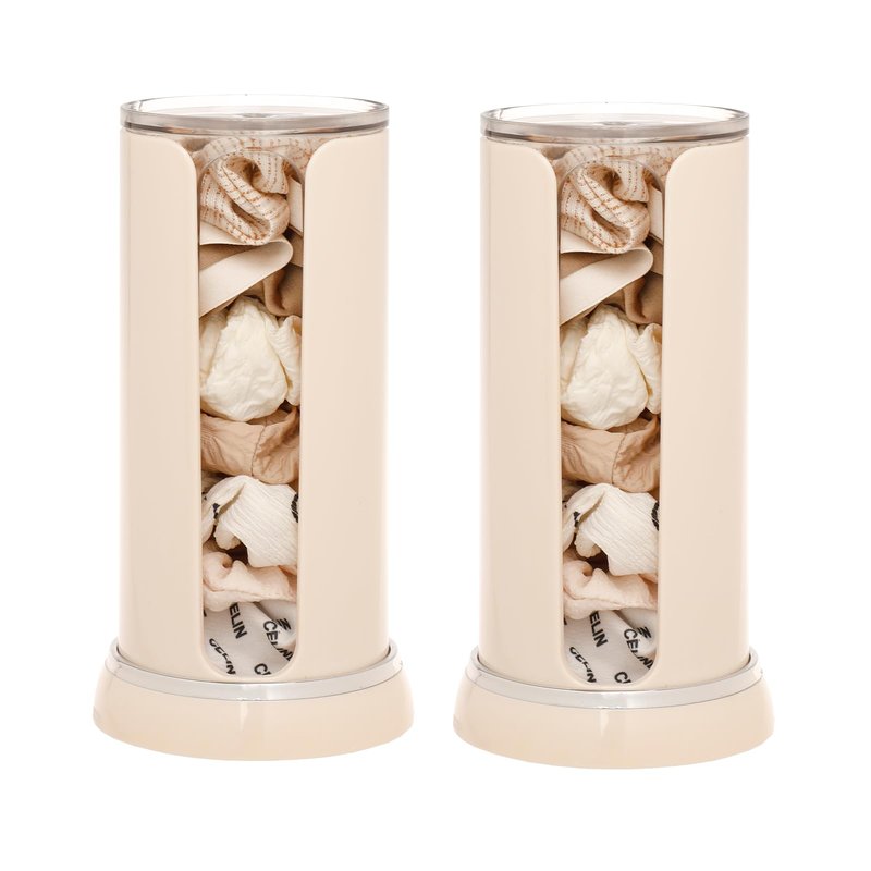 FABROK Plastic Portable Scrunchie Holder, Double Barrel Design Hair Tie Accessories Stand, Clear Bathroom Jars for Scrunchie, Hair Accessory, Round Cotton Pads(Cream-2PCS)