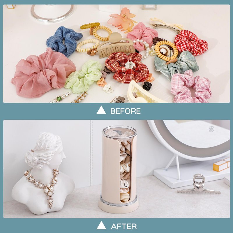 - DOUBLE BARREL DESIGN: This scrunchie organizer can be divided into two box, large capacity for storage.
