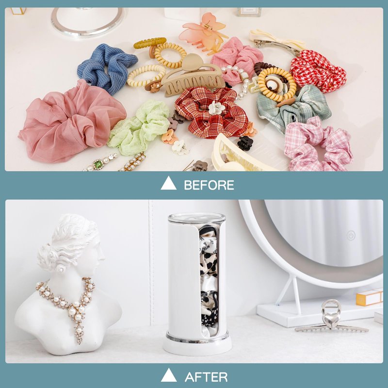 - MUTI-PURPOSE FUNCTION: FABROK scrunchie organizer can not only hold hair ties, but also cotton pad, beauty blender. Humanized design keeps your scrunchie holder and other makeup tools well organized in your makeup table, meanwhile making your counter neater with more space.