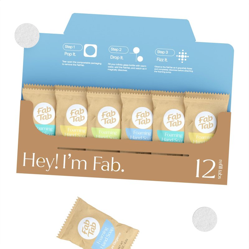 FABTAB Foaming Hand Soap Refill - Natural Hand Soap - Bathroom Hand Wash - Plant-Based - No Harsh Chemicals - Variety Scents - 12 Pack. Makes 12 x 11.9 fl oz (Bottle Not Included)