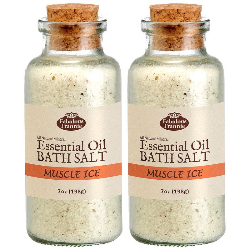 Fabulous Frannie Aromatherapy Muscle Ice Mineral Bath Salt Cinnamon, Eucalyptus, Rosemary, Clove Bud, Lavender, Sweet Orange and Peppermint Essential Oils 7oz (Pack of 2)