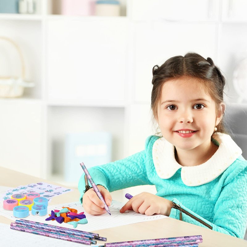- Safe Materials and Reliable Quality: our mermaid notebook is made of thick paper, mermaid pencils are made of sturdy wooden material, mermaid stampers and pencil sharpeners are made of quality plastic material, all of the ocean party favors are reliable and safe to your kids