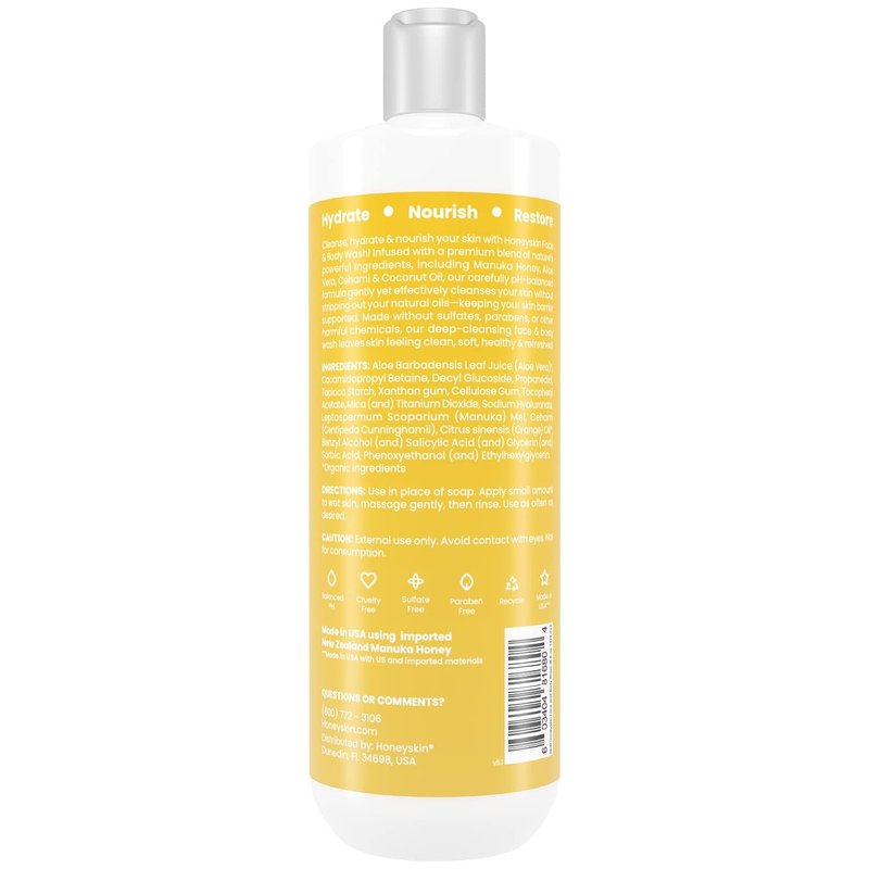 - RESPONSIBLY SOURCED, MADE IN THE USA - Our sensitive skin face wash is made with you in mind. This body wash for women & men is formulated WITHOUT parabens, sulfates, & other potentially harmful chemicals. Honeyskin clean body wash is cruelty-free & 100% made in the USA.