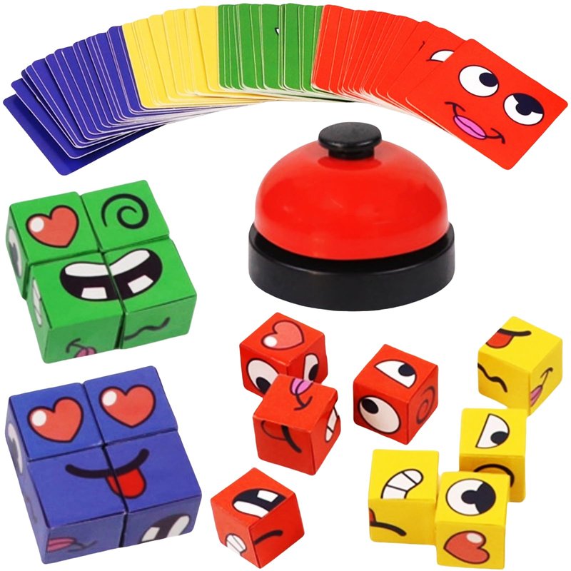 Face Changing Magic Cubes Game Face Blocks Game Face Change Cube Game Expression Matching Block Puzzles Building Cubes Toy Educational Puzzles Toy Family Board Games for Child & Adults (with Bell)