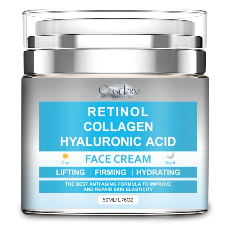 CielaDerm's Retinol Face Face, Neck and Décolleté Cream with Collagen and Hyaluronic Acid will transform your daily skincare routine! It is packed with active ingredients to target specific skin concerns and provide an intensive & holistic skincare routine. It reduces fine lines, wrinkles, and hyperpigmentation with just one potent cream. It also deeply moisturizes the skin and helps avoid dryness throughout the day and night. Its luxurious creamy texture is formulated using an age-defense formula with the goodness of Retinol, Collagen, and Hyaluronic acid.