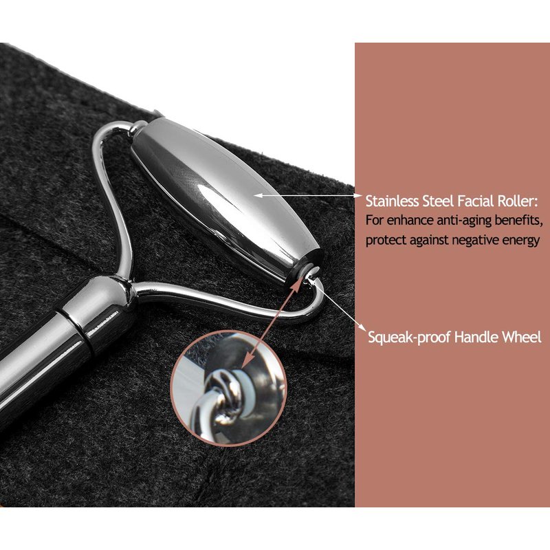 Face Roller and Gua Sha Set - Stainless steel Mini Eye Roller set, Face Massager for Wrinkles, Anti Aging Facial Roller - Authentic, Durable, Noiseless Design
