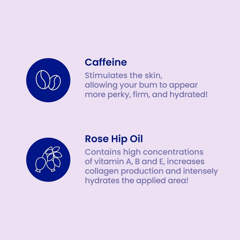 - 💦CONCENTRATED ESSENCE with quality ingredients like Caffeine and Rosehip Oil to eliminate blackheads, reduce dryness, and brighten and firm the skin for a more perky, smooth bum