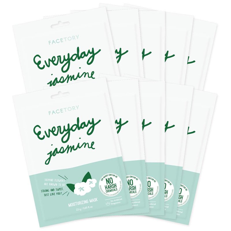 FACETORY K Beauty Face Mask Skin Care - Everyday JASMINE Moisturizing Sheet Mask | Plant-Based with Jasmine Infusion (10 Pack)