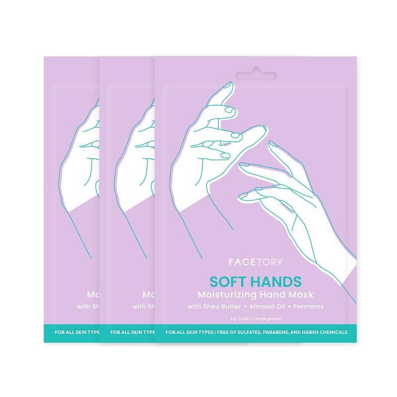 FACETORY Soft Hands Moisturing Hand Mask with Softening Shea Butter, Almond Seed Oil, and Ferments - Hand Spa Nourishing and Renewing Hand Sheet Mask for Dry, Rough Hands and Cuticles - 3 Pairs