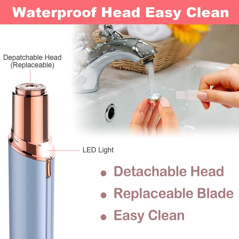 Facial Hair Remover, Removal Shaver for Women, Rosarden USB Rechargeable IPX6 Waterproof Eyebrow Face Razor Trimmer for Lips, Body, Arms, Mustaches, Fuzz and Chin (Blue)