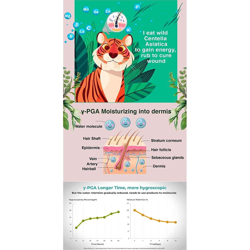 - NURTURES: γPGA Centella Asiatica Hyaluronic acid. Silky Softness. Volume Up & boost style.
