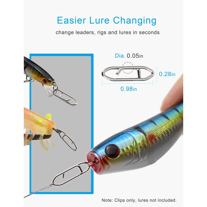 - Versatile Fishing Clips: Stainless steel fishing clips designed for easier lures, rigs, leaders changing, many various lure types match.