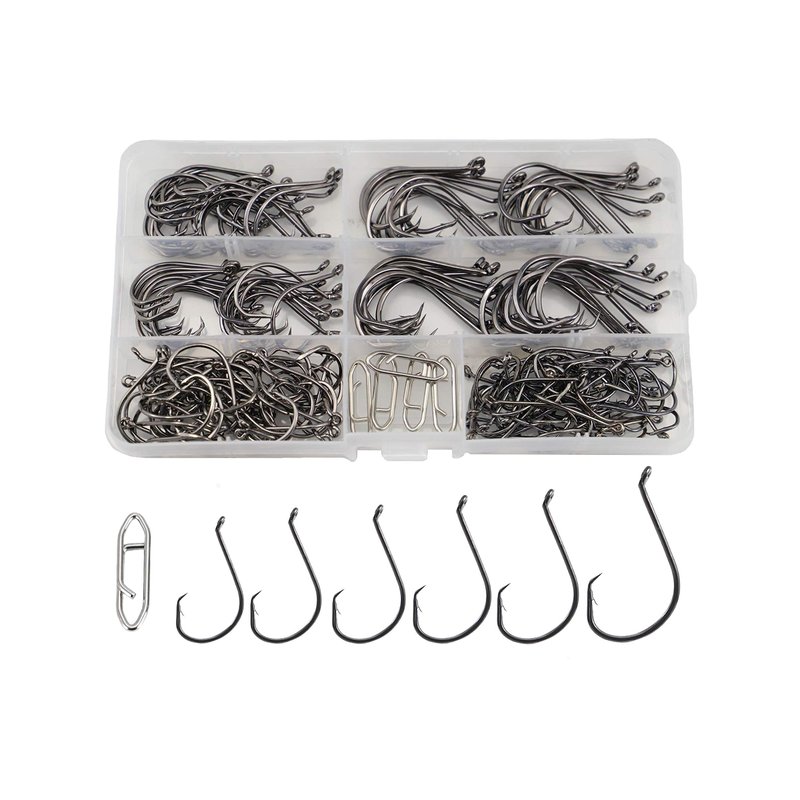 - What You Get: 180Pcs saltwater circle hooks neatly separated by 6 sizes (50pcs for each size 1/0 and 2/0, 20pcs for each 3/0, 4/0, 5/0, 6/0) and 5pcs fishing clips, all in a reusable box. A good selection of sizes can meet your needs.