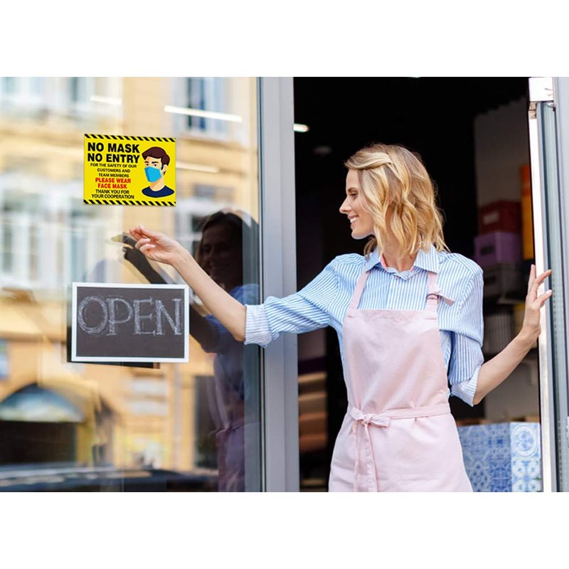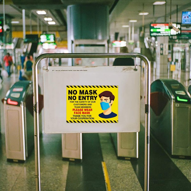 - BRIGHT & NOTICEABLY: Bright yellow colors are remind customer and team members to wear face mask if they want to enter.