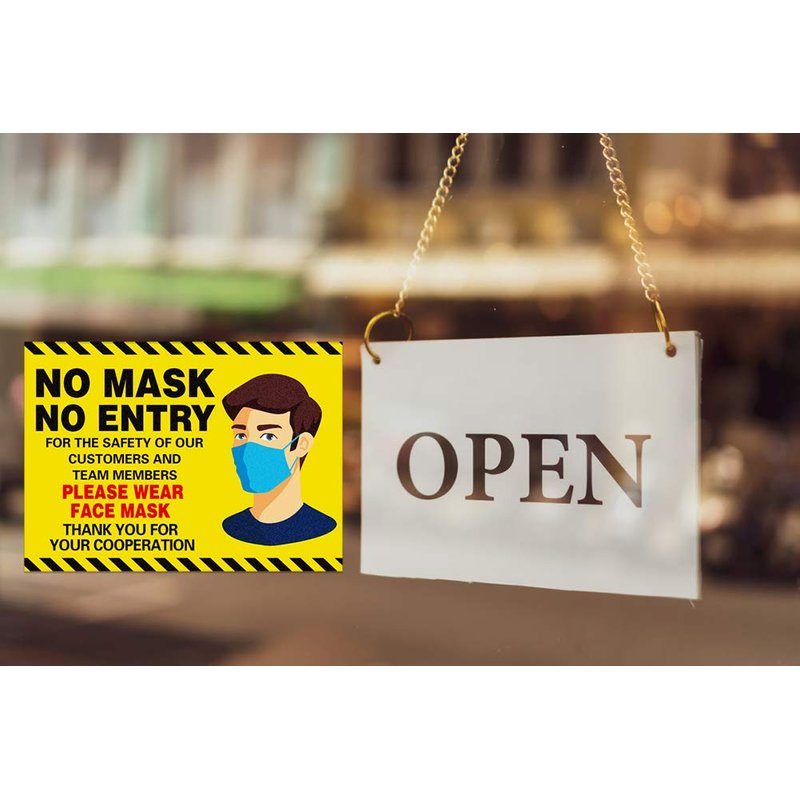 FaCraft No Mask No Entry Window Sticker,7.1"x 9.8" Face Mask Required Safety Warming Decal for Factory,Grocery Stores,Cinema,Bus.