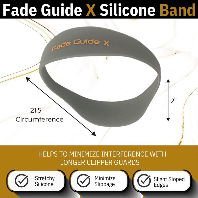 - Silicone Band - Crafted from stretchy silicone, the flexible Fade Guide has been designed to minimize slippage during use and accommodate most adult head sizes. Additionally, the edges of the Fade Guide X have been designed with a slight slope that helps to minimize interference with longer clipper guards.