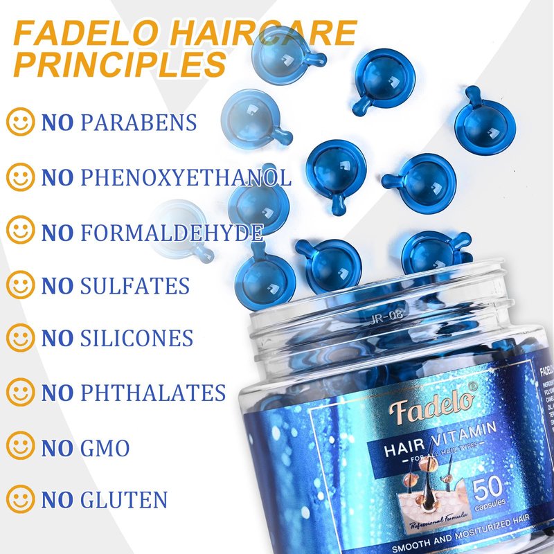 Fadelo Hair Treatment Oil Essence for Frizzy & Dry Damaged Hair, Keratin Styling & Moisturizing Capsules with Argan, Jojoba & Avocado Oils - No Rinse Conditioner with Vitamin A C E and Pro B5, 50pcs