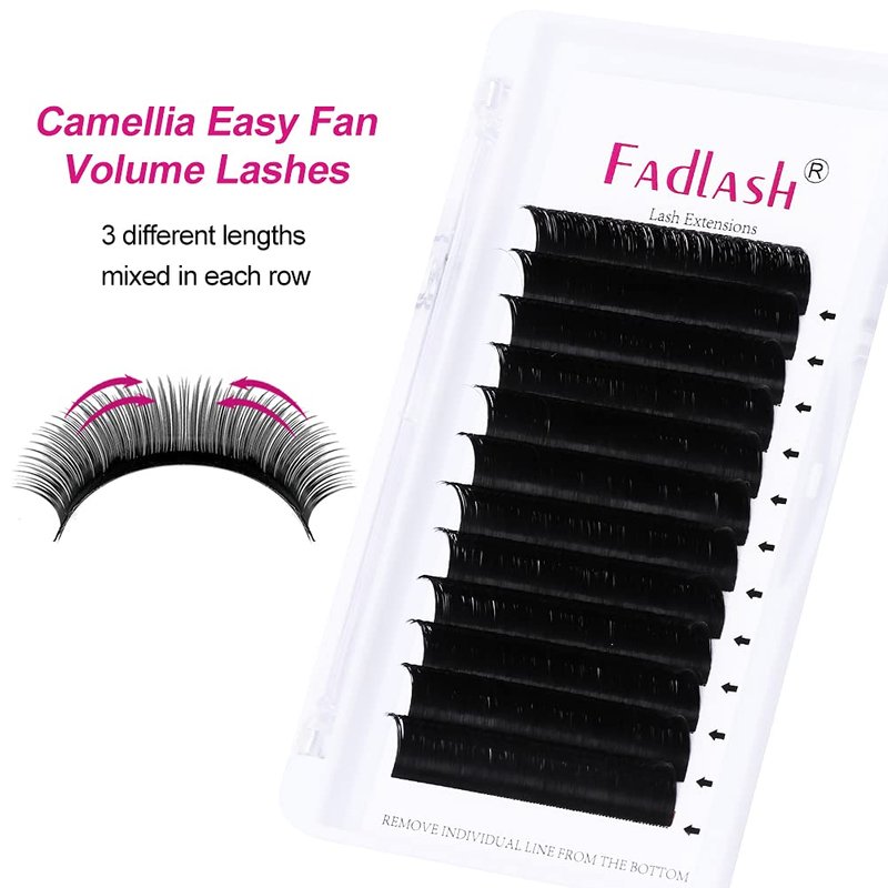 FADLASH Easy Fan Volume Lashes Multi Length Hybrid Volume Eyelash Extensions Black Self Fanning Lash Extensions Supplies (0.07-D, Camellia 10 11 12mm)