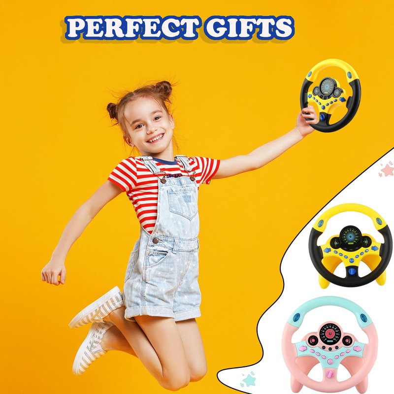 - Package include: you will get 2 different color simulated steering wheel toy, pink and yellow, with color box packaging, different colors for your child to change and decorate the playhouse during play, can also share it with friends to play together