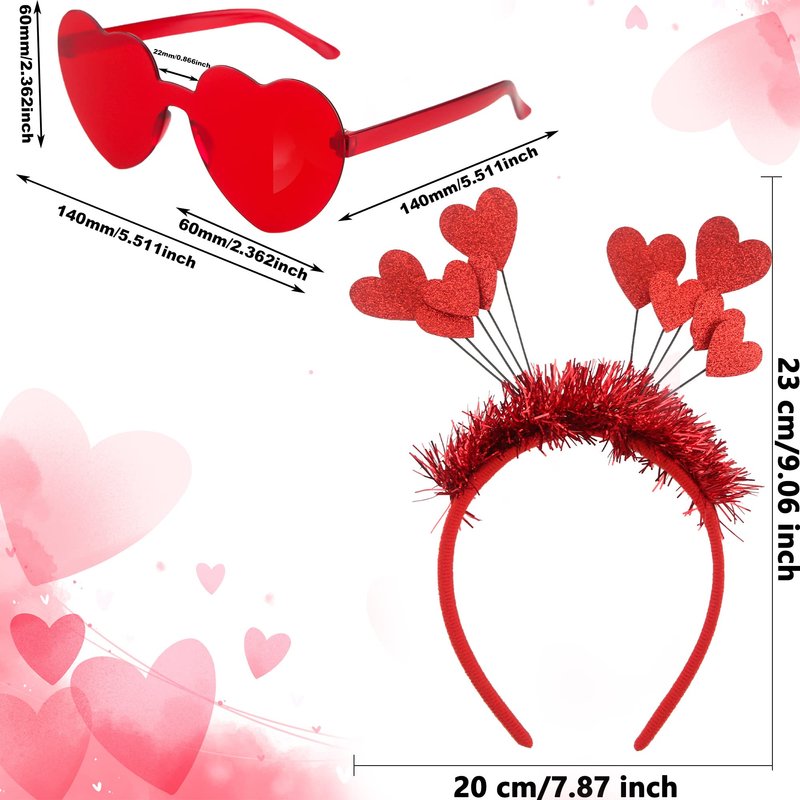 - Package include: you'll get a set of 8 pack Valentine's day heart headbands, including 4 pieces heart headbands and 4 pieces heart-shaped sunglasses, enough for any outfit you need, and it makes you look very cute and charming on Valentine's Day, creating the romantic atmosphere