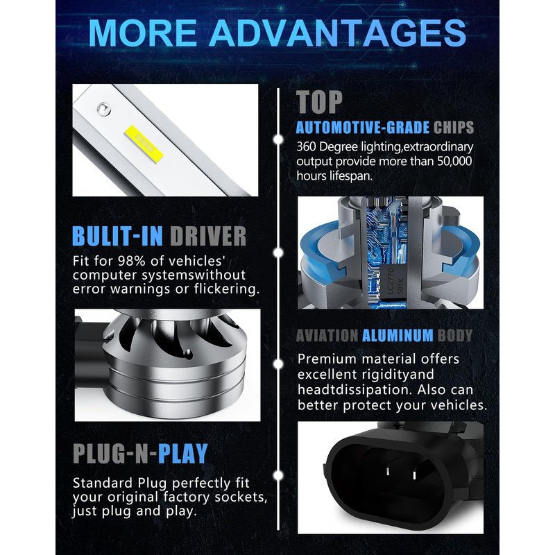 - 【CanBus Ready & Widely Application】The built-in driver of H8 fog lights adopt upgraded technology, not only has a more intelligent temperature control system but also applies to 98% of vehicle computer systems without error codes or flickering.