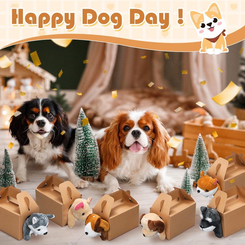 - Sufficient Quantity: our package includes 12 pcs dog paper boxes and 12 pcs stuffed puppy; This allows you to cater to a dozen dog loving guests and ensures nobody leaves your party empty handed; Each package ensures a fun filled party with heartwarming favors for everyone