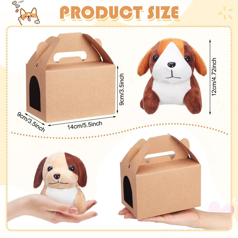 - Proper Size: our dog party favors boxes measure about 6 x 3.5 x 3.5 in/ 14 x 9 x 9 cm, providing ample space for compact yet thoughtful gifts; The plush dogs approximately 4.72 inches, are suit for a soft and adorable party favor; The sizes are designed easy to carry