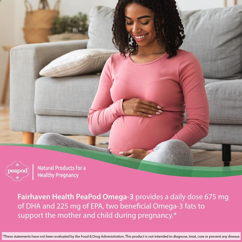 - Easy and Convenient! Easy-to-swallow softgels with a natural citrus flavor, and no aftertaste. Fairhaven Health PeaPod Omega-3 provides a daily dose 675 mg of DHA and 225 mg of EPA, two beneficial Omega-3 fats to support the mother and child during pregnancy.*