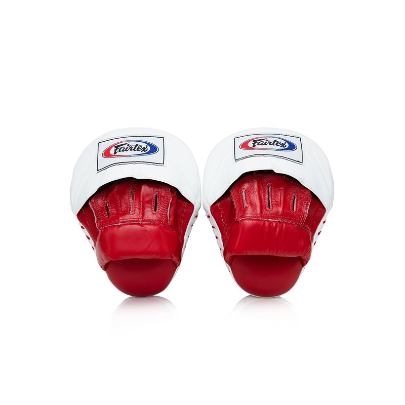 Fairtex FMV9 Contoured Focus Mitts |Striking Accuracy & Protection for Boxing, Muay Thai, Kickboxing |Ergonomic Design, Soft Padding, Secure Fit Leather -(Red/White)