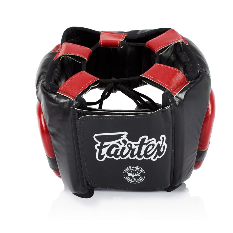 Elevate your combat sports experience with our Fairtex Genuine Leather Boxing Headgear, designed for unparalleled protection and performance. Crafted from high-grade leather, this headgear ensures durability and longevity, making it a reliable companion for your training sessions. The multi-layered foam padding offers optimal shock absorption, safeguarding you during intense sparring sessions in various contact sports such as MMA, Muay Thai, boxing, and karate. The ergonomic design enhances vision and movement, providing a comfortable fit for all your training needs. Adjustable straps guarantee a secure fit, while comprehensive coverage helps prevent ear, cheek, and chin injuries. The increased padding on the forehead, cheek, and back straps, combined with a curved chin protector and ear windshield, simulates real competition conditions. Our headgear boasts a special multi-layered high-density foam core, maintaining a soft inside while offering a tough exterior. The adjustable lace-up on top and padded back hook and loop closure ensure a customized and secure fit. This headgear is not only about protection; it's about emulating real combat situations in the training arena. Constructed from genuine leather, the headgear is water-resistant and features a non-tear nylon lining. This headgear is your go-to choice for intensive training, providing the confidence to push your limits. Explore the variety of combat sports with confidence, knowing you have the best headgear for the job. Whether you're into boxing, MMA, Muay Thai, or karate, our Fairtex Genuine Leather Boxing Headgear is the ideal companion for your journey. Invest in your safety and performance today.
