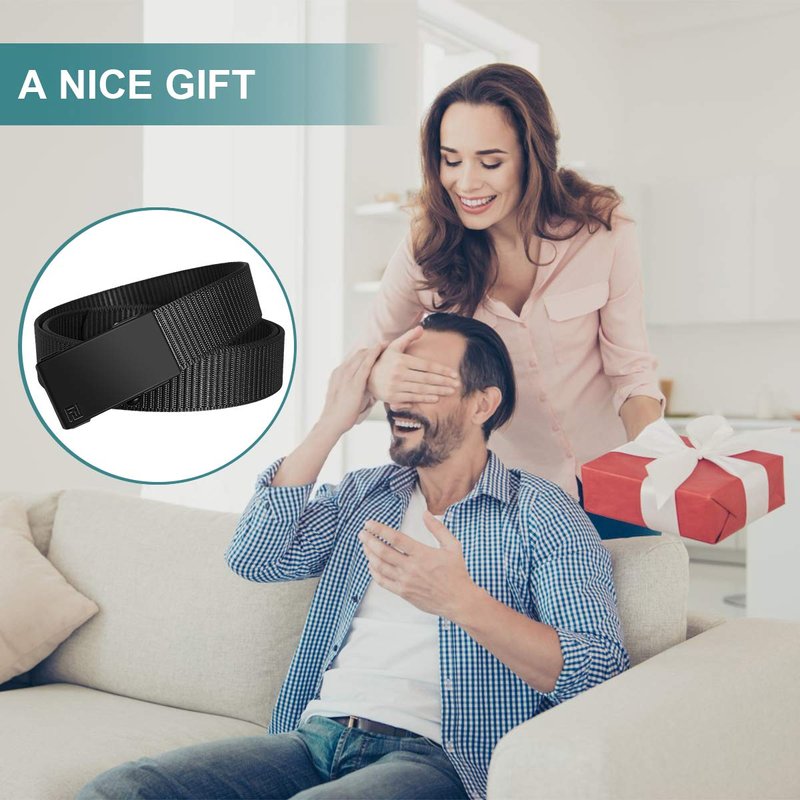 - Gift for Men-Automatic Ratchet Buckle Web Belt - The automatic buckle belt is new design, First time we use the nylon webbing attache to a ratchet buckle. Just slide the belt into the buckle and pull the belt through, the buckle simply auto locks the belt.It’s simple, but smooth and sleek!