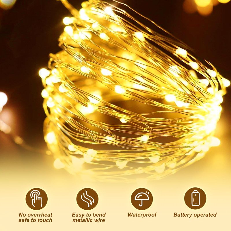 - Super bright battery operated lights :Upgrade your decor with these 50 Micro LED Battery Operated String Lights! Crafted with delicate copper wire, they feature intensely bright bulbs, each as small as a grain of rice. Enjoy their steady 360-degree glow, perfect for adding twinkle lights to any decoration project.