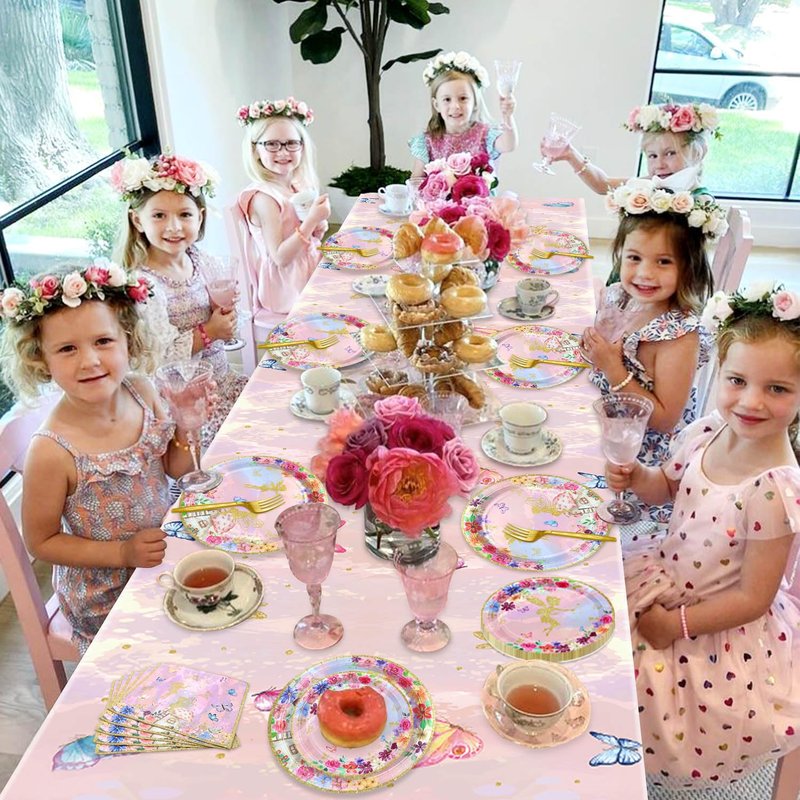 - High Quality - Made of thick and lightweight paper, fairy plates princess plates and napkins are safe and durable. The fairy tablecloth is made of waterproof, durable, and stain-resistant PE.