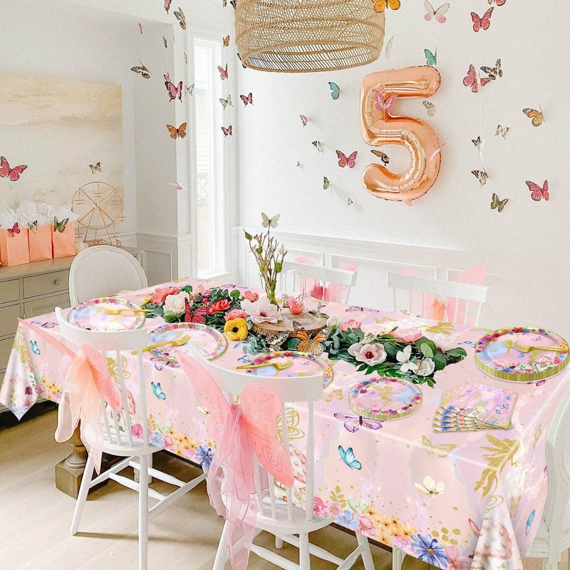 Fairy Party Decorations - Floral Fairy Paper Plates Pink Butterfly Napkins Floral Tablecloths for Princess Flower Fairy Party Supplies, Serve 20