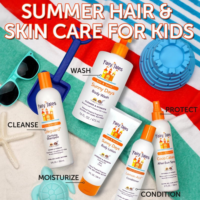 - A sun, beach and pool essential: The Fairy Tales Sun & Swim line is specially formulated to establish a great kids after sun routine. Not only great for the kids but can be used for all ages