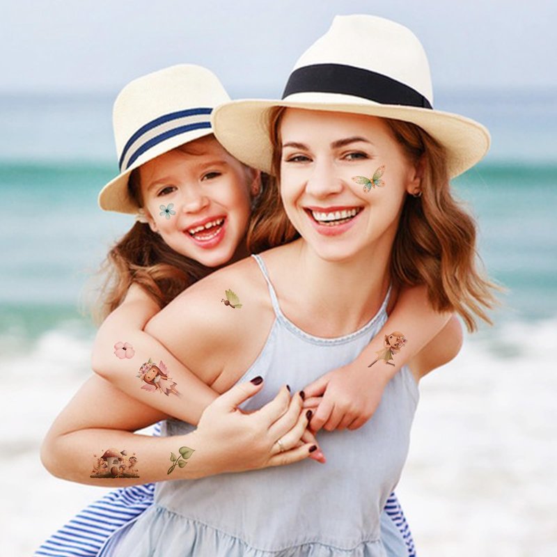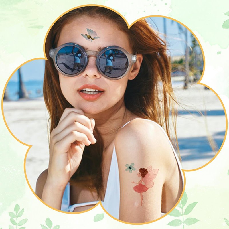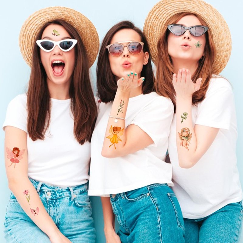 - Fairy Temporary Tattoos: We specialize in designing popular and beautiful fairy-themed tattoos for girls. For example, various forms of fairies, butterflies, flowers, mushrooms, leaves and more!