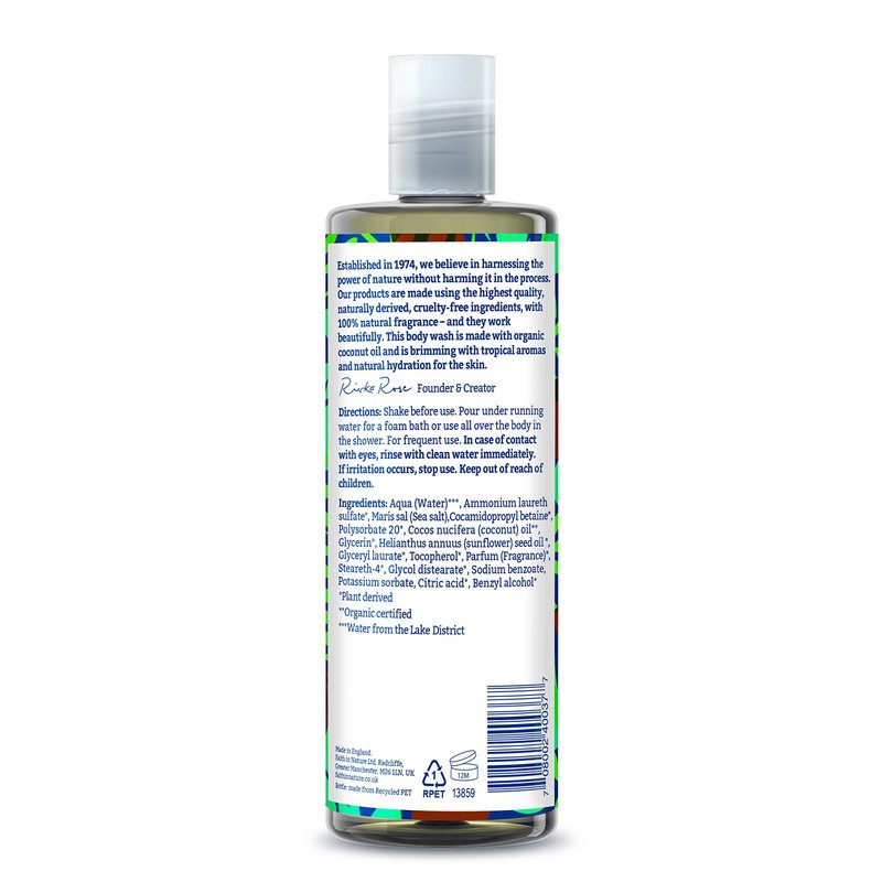 - This body wash is made with organic coconut oil and is brimming with tropical aromas and natural hydration for the skin