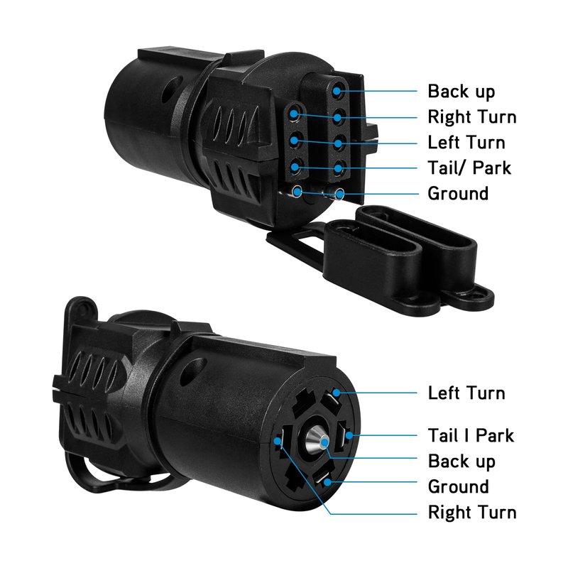 - The Main Function - Converts Trailer Connector 7-way Flat Blade Pin to a 4-way or 5-way RV-type Round Pin Connector.