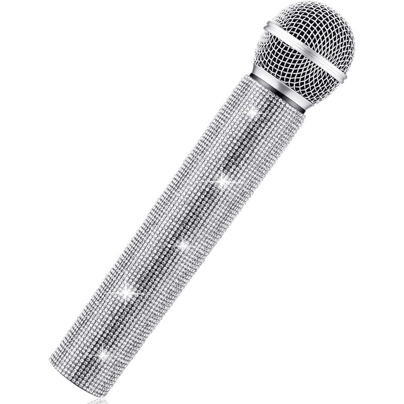 - Bling Fake Sparkly Microphone: the outer layer of sparkle microphone prop is glitter rhinestone design, bedazzled and shine