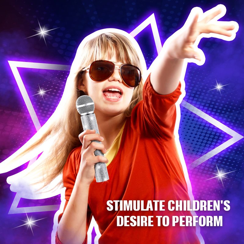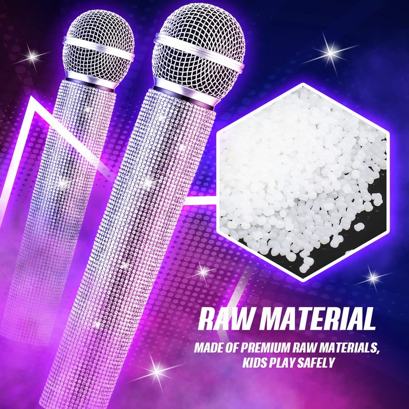 - Bedazzled Microphone Prop : the fake microphone prop looks like a real microphone, boys and girls can use it as a cool stage prop to express themselves in front of people, exercise courage and not stage fright, and enhance their confidence in self-expression