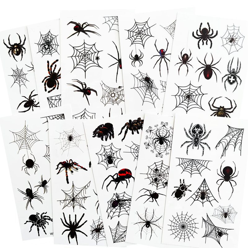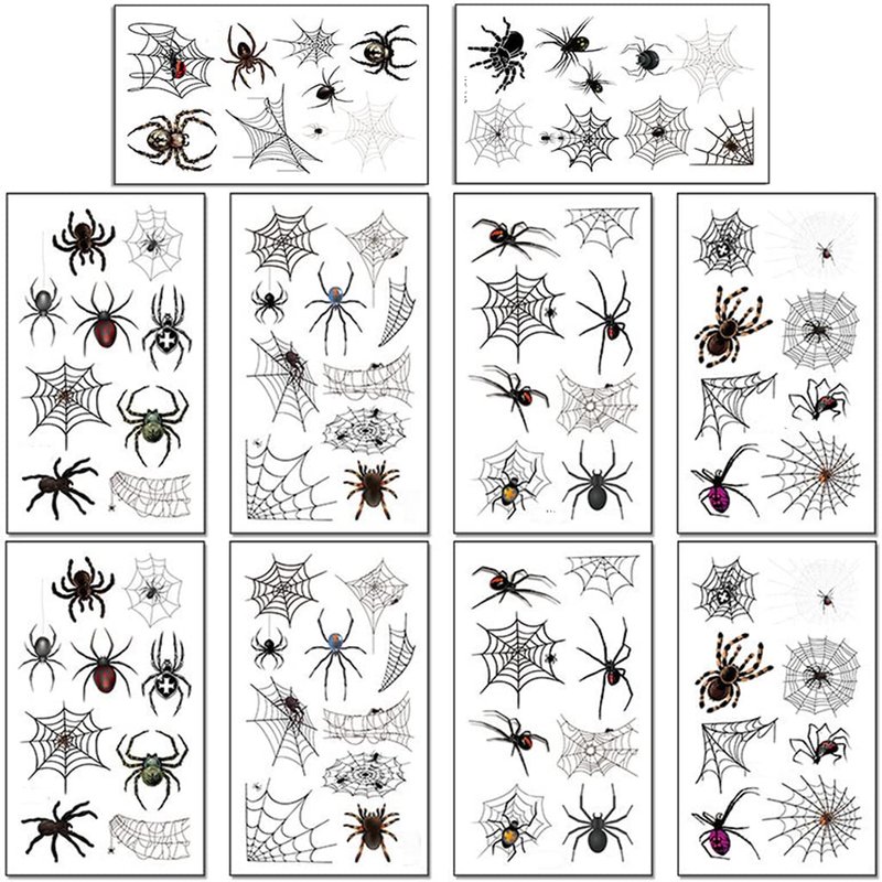 Fake Spider Tattoos, Temporary Face Tattoo for Women Men Kids Halloween Costume, 10-Sheet