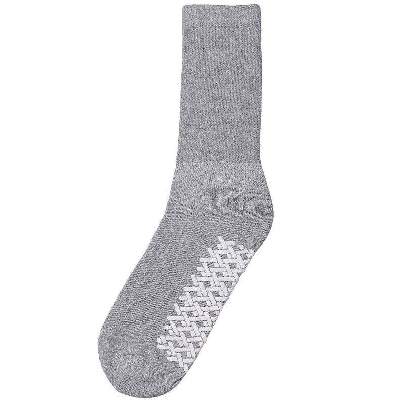 Falari Men Women Anti Slip Grip Non Skid Crew Cotton Diabetic Socks For Home Hospital (3-pairs Grey, 9-11 Women/Men Size)