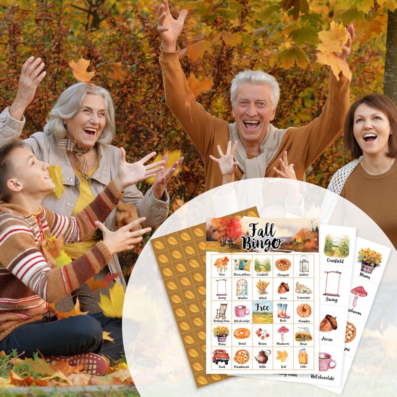 Fall Bingo Game Cards, Autumn Bingo Games for Adults, Fall Harvest Bingo Cards Supplies, Thanksgiving Party Birthday Party Bingo Decor Favors, Card Gifts for Friends Family Holiday, 01